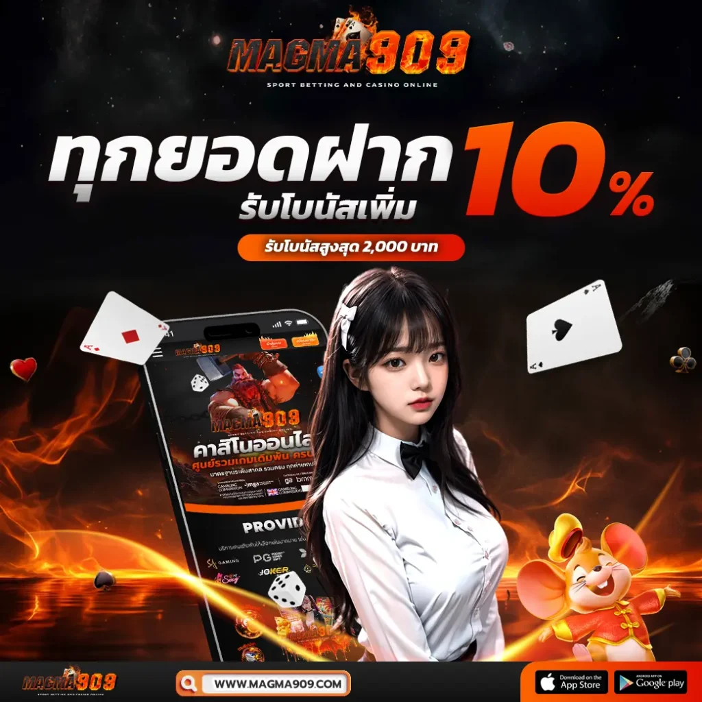 Magma909.com คาสิโน สล็อต กีฬาออนไลน์เปิดให้บริการตลอด 24 ชั่วโมงท่านสามารถฝากและถอนเงินได้ตลอดเวลาที่ต้องการเป็นที่นิยมใช้บริการมากที่สุดในประเทศไทย รับเดิมพันกีฬาออนไลน์และคาสิโนทุกประเภท บริการลูกค้าทุกวันไม่มีวันหยุด